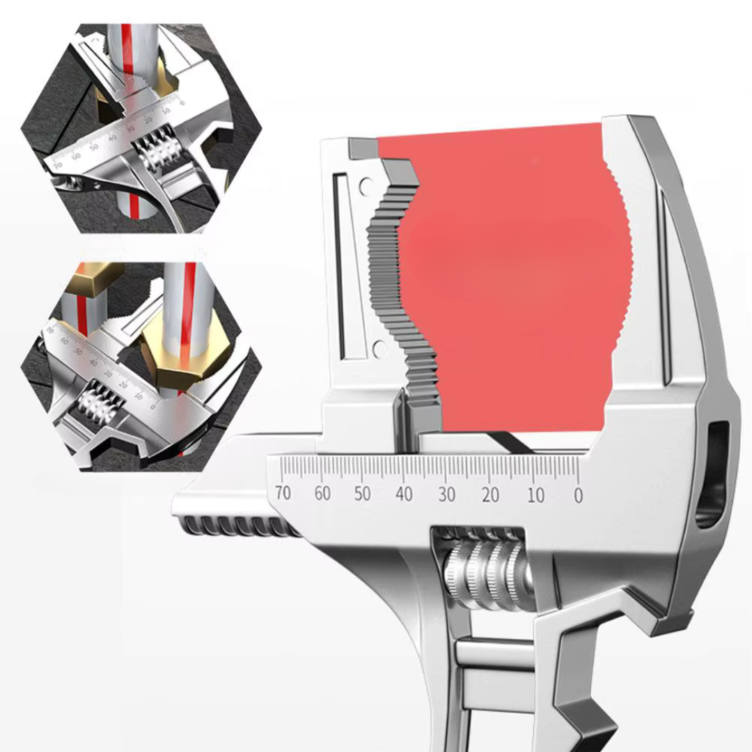 Het bereik van deze universele reparatiesleutel is van 6mm tot 68mm. Dit maakt hem geschikt voor een breed scala aan moeren, pijpen en fittingen.